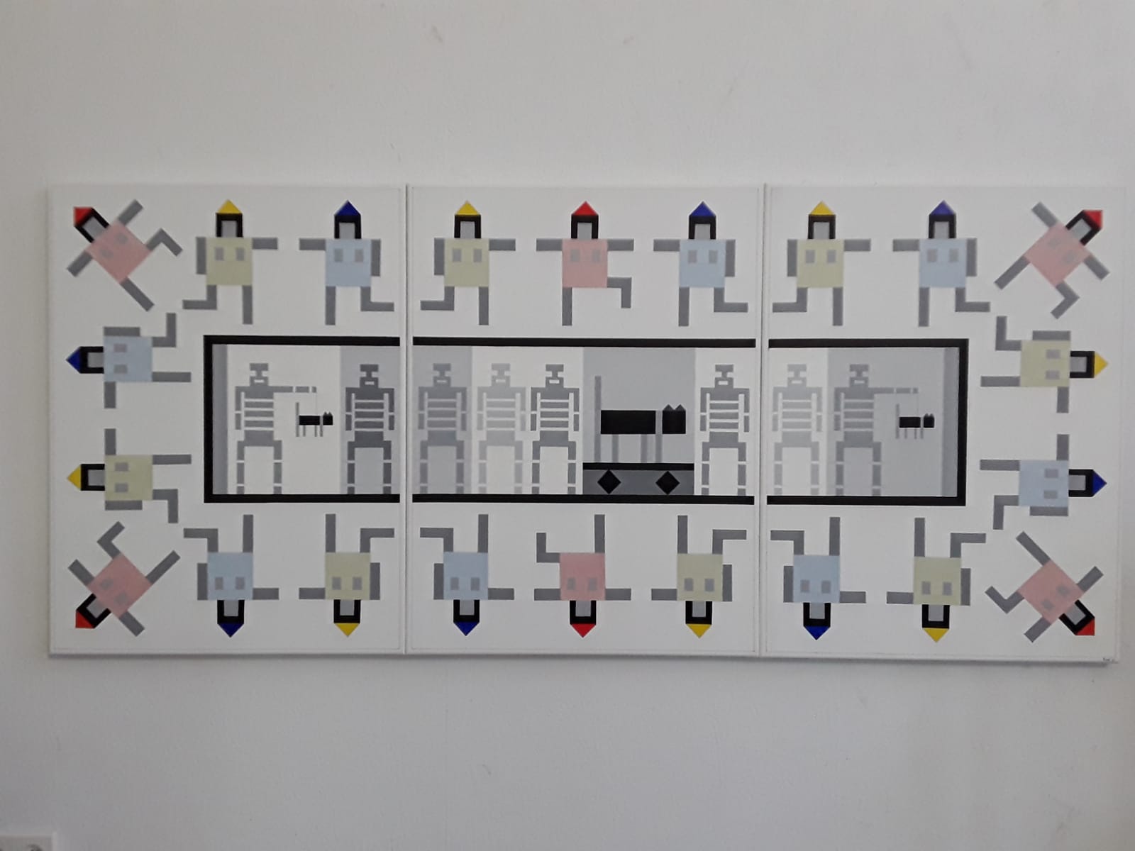 The Festive Reception of the Black Cat and his Train. Artist: Roel. 2025. 3 joined canvases of 80 x 60 cm.